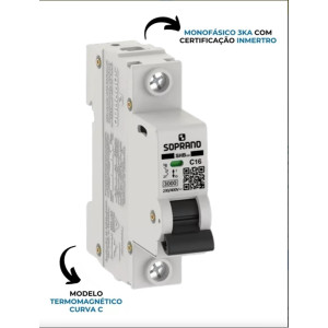 DISJUNTOR MONO DINN 1X16 SOPRANO SHB1-C16A DISJUNTOR MONOFASICO