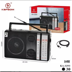 RADIO PORTATIL AM/FM COM BATERIA RECARREGAVEL ENTRADA USB E AUXILIAR KA-3293 RADIO MESA CLASSICO