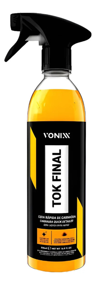 Tok Final foi desenvolvida com a mais pura cera de carnaúba cearense e polímeros de última geração, que potegem e realçam o brilho de pintura automotivas. É ideal para ser usada após a lavagem e na manutenção da proteçao da pintura do veículo entre os enceramentos. Pode ser aplicada em toda a parte do veículo, incluindo vidros, para-choques e borrachas.