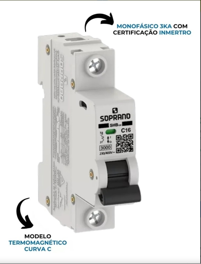 • Curva de disparo: Curva C (ideal para cargas indutivas como motores e eletrodomésticos)
