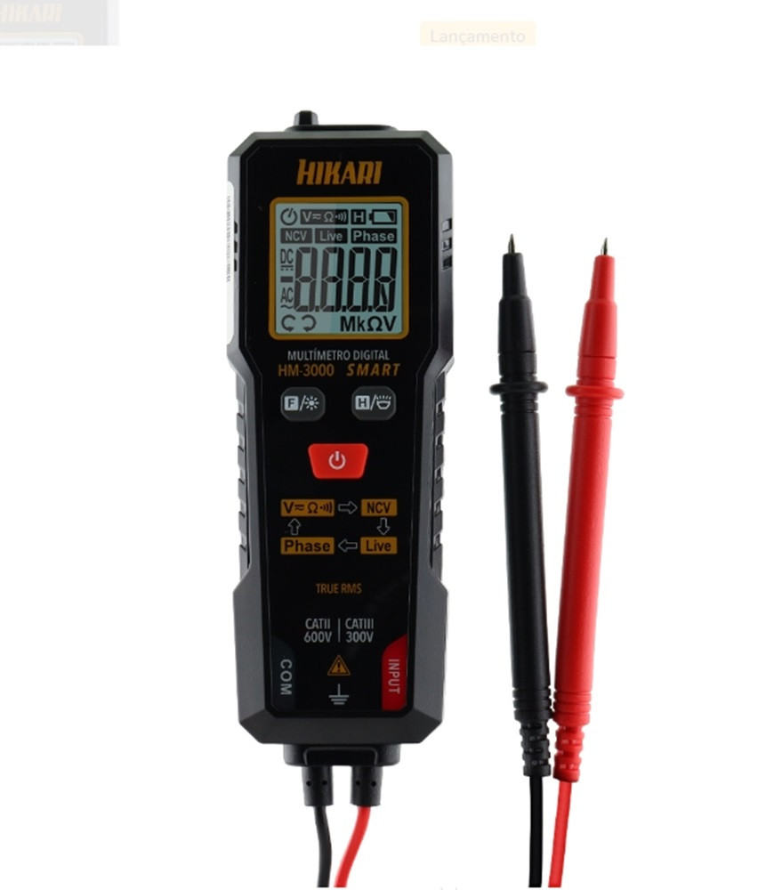 O HM-3000 Multímetro Digital Smart nasceu para os testes rápidos do dia a dia, aqueles que pedem precisão imediata, segurança e zero margem para erro. Compacto de verdade, ele cabe na palma da mão, entra no bolso e está sempre pronto quando o trabalho chama.